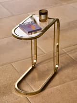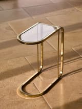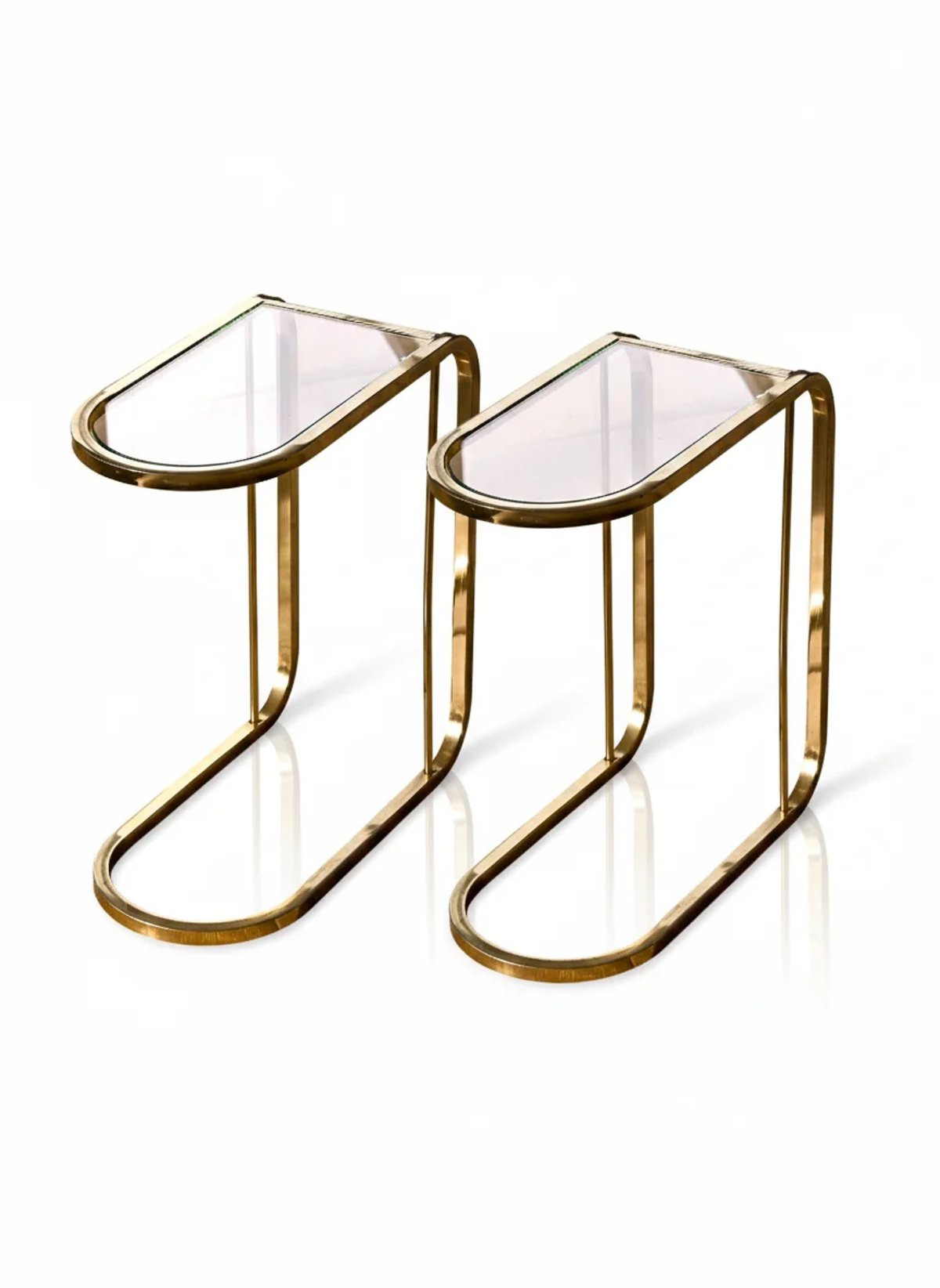 Pair of Modern C-Shaped Brass and Glass Side Tables