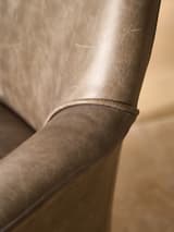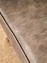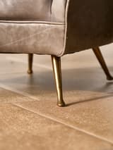 Mid Century Modern Distressed Grey Leather Armchair with Brass Legs (Pair)