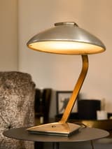 Mid Century Modern Brushed Brass Desk Lamp with Dome Shade