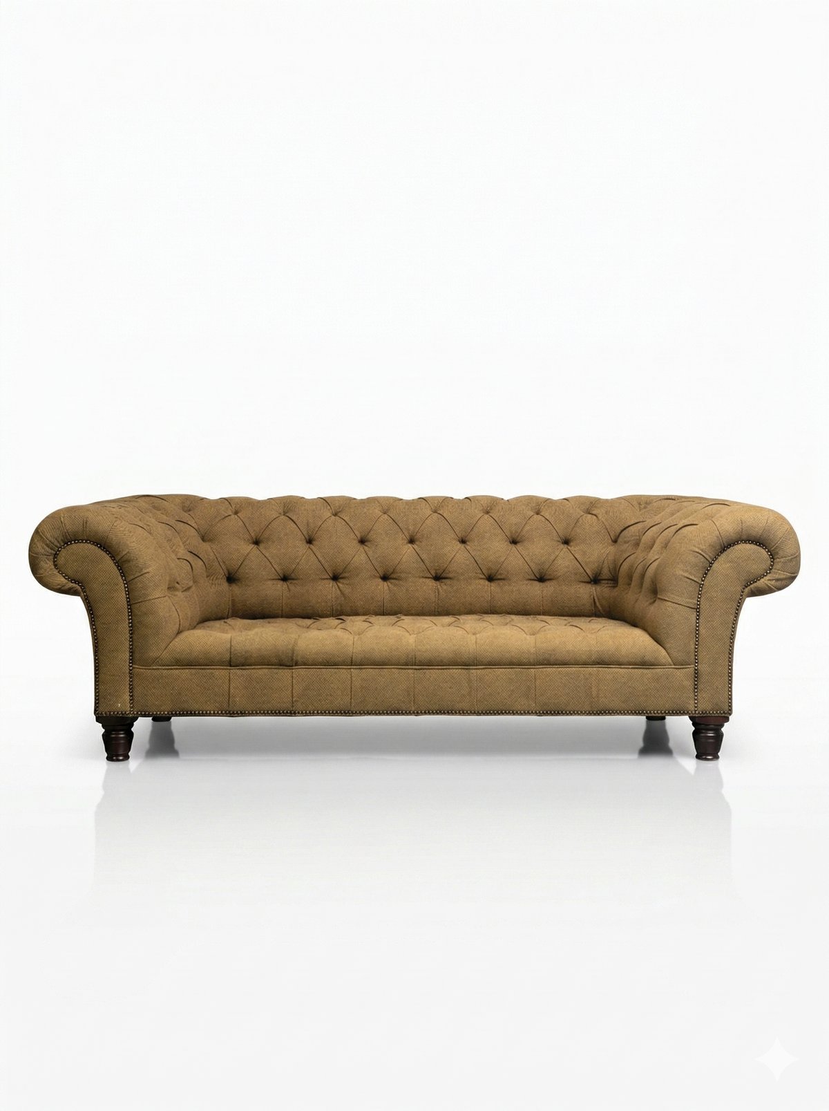 Mustard Tweed Chesterfield Sofa on Turned Legs