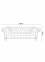 240cm wide, 74cm high. Approximately 95cm deep.