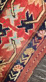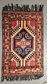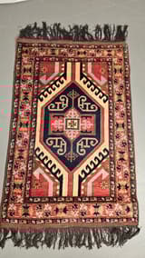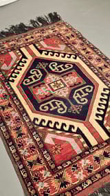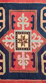 Geometric Wool Rug in Red, Blue and Cream