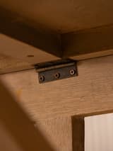 Large refectory-style dining table from OKA, crafted in a light washed oak veneer with a natural grain finish. Designed to seat 8–10 comfortably, it has a classic farmhouse aesthetic with a solid, well-proportioned base. Originally purchased around 2018, the table remains in good overall condition with light signs of everyday use. Includes a custom-cut protective glass tabletop, adding practicality while preserving the surface. A substantial, versatile piece suited to both modern and traditional interiors.